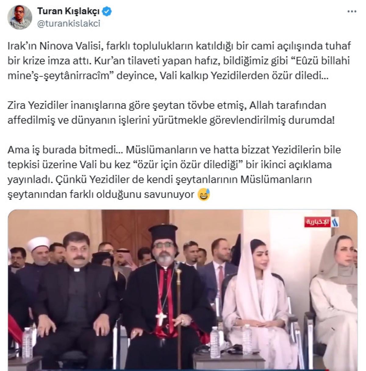 Abdülkadir Dakhil, farklı toplulukların katıldığı açılışta Kur’an tilaveti yapan hafızın "Euzubillahimineşşeytanirracim Bismillahirrahmanirrahim" (Kovulmuş şeytanın şerrinden Allah'a sığınırım) demesi üzerine Yezidilerden özür diledi.