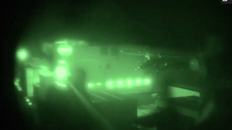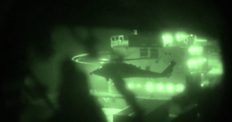 Gece görüş kamerasıyla kaydedilen görüntülerde, ABD Deniz Piyadeleri’nin gemiye inişi ve güverte üzerindeki hareketliliği yer aldı.