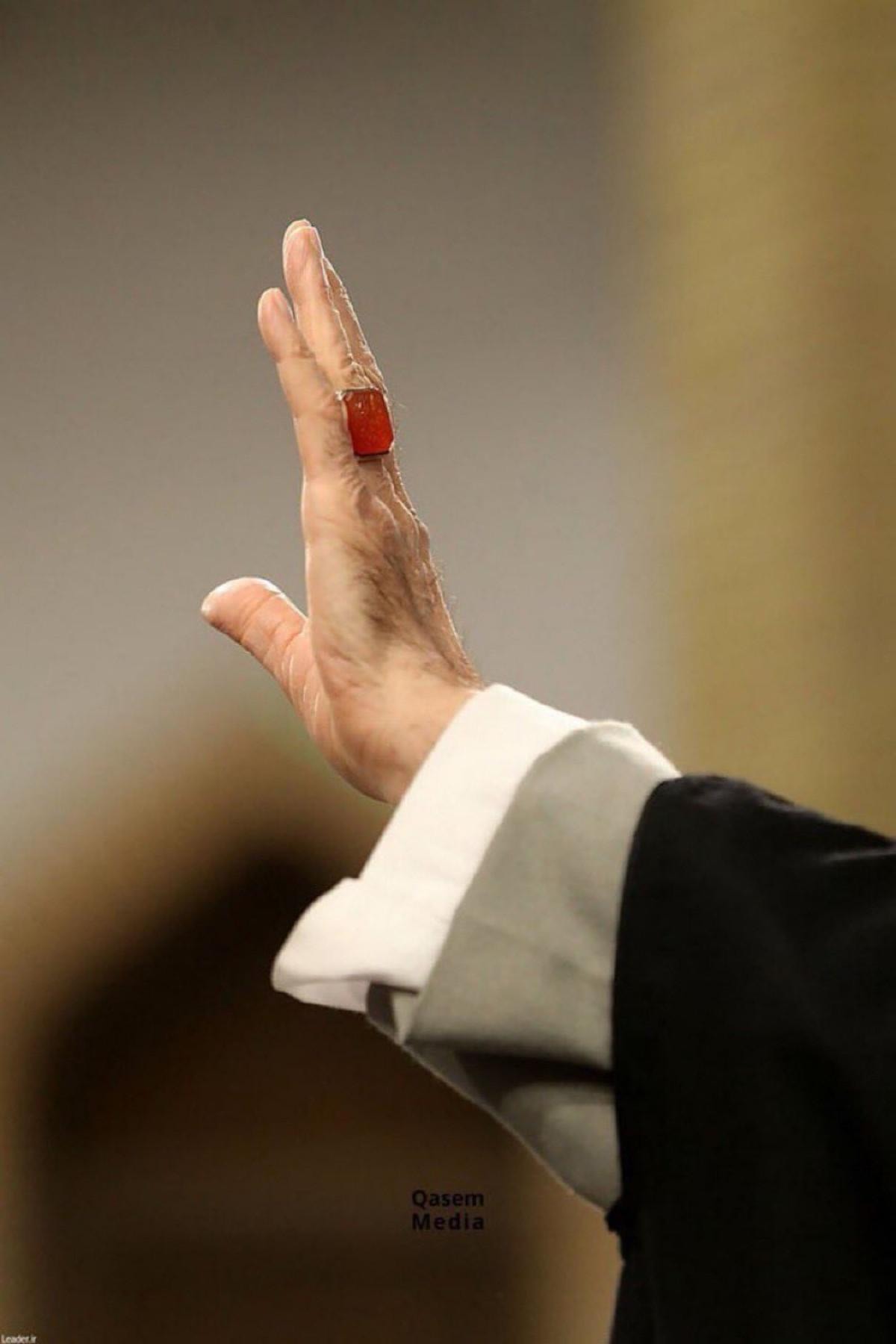 Ayrıca, "Fotoğraftaki el, İran dini lideri Ayetullah Ali Hamaney'e ait. Kırmızı yüzük, savaş çağrısı olarak yorumlanıyor. Bu el havaya kalktığına göre saldırmak için inecek şeklinde analiz ediliyor." yorumları yapıldı.