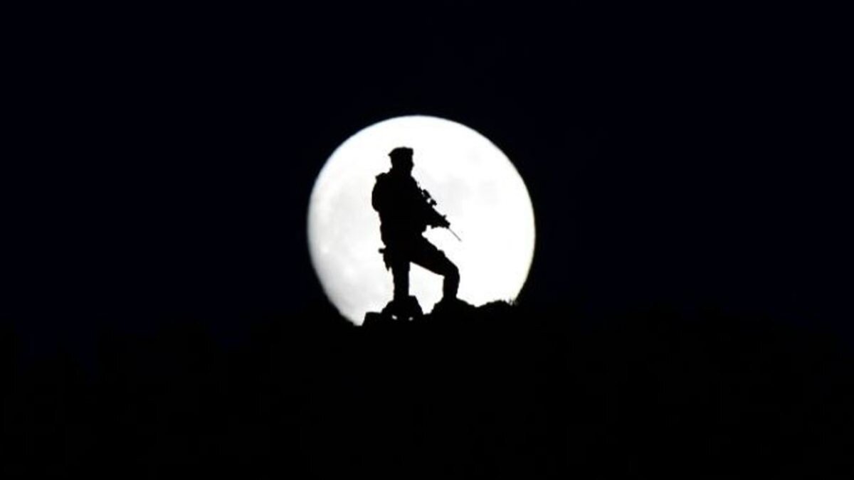 İHA muhabiri Yılmaz Sönmez, özel harekat polisinin silüetini dolunayla aynı karede görüntüledi.