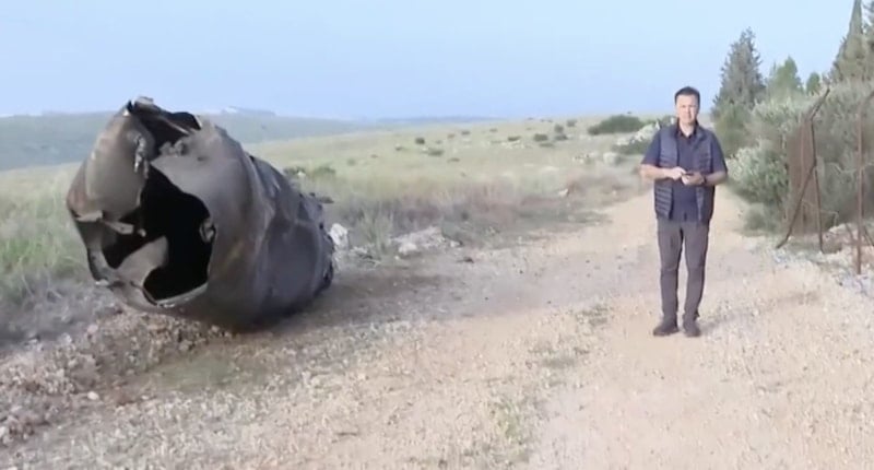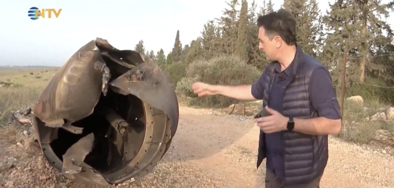 İsrail tarafından havada imha edilen devasa füzeyi, NTV ekibinden muhabir Osman Terkan ve kameran Cüneyt Ali Horozal, Tel Aviv'de görüntüledi.