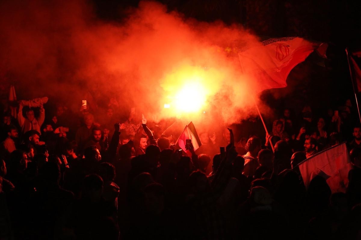 İran'ın başkenti Tahran’da halk, İran’ın İsrail topraklarını insansız hava aracı ve füzelerle hedef aldığı saldırıyı coşkuyla kutladı.
