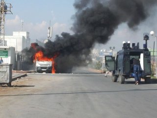 BENZİN İSTASYONUNDAKİ OTOBÜSE MOLOTOF