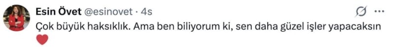 Pınar Erbaş, işine son verildiğini X hesabı üzerinden paylaşması ve kırgın olduğunu yazması üzerine de bazı isimlerden destek mesajları geldi.