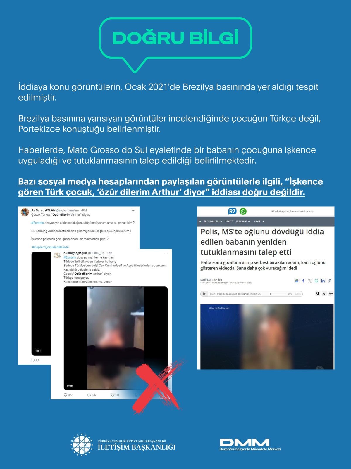 Çocuğun Türk olmadığı, Brezilya'da yaşadığı ve babası tarafından işkence gördüğü ifade edildi. Öte yandan konunun 2021’de haber olduğu belirtildi.