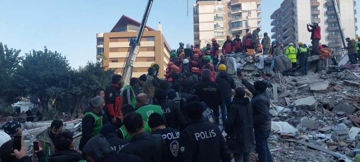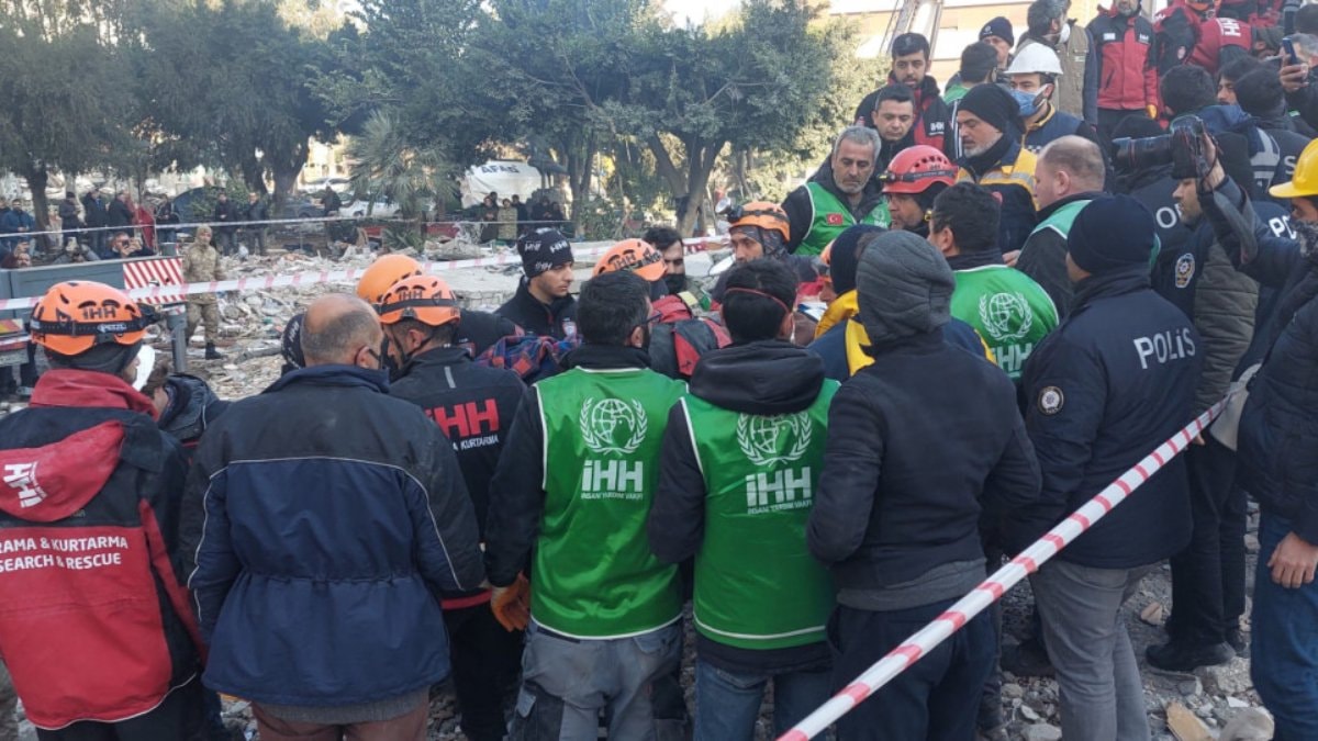 Depremin büyük yıkıma yol açtığı Hatay'ın İskenderun ilçesindeki Arzu Apartmanı enkazında bir askerin ses duyması ile ekipler çalışma başlattı.