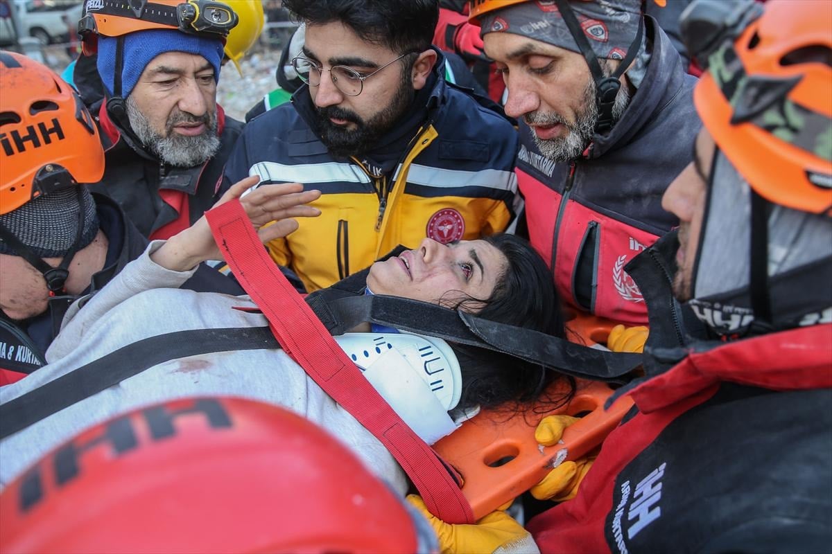 Enkazda yapılan hassas çalışma sonucu 102 saat sonra 4'ü kadın 6 kişi yaralı olarak kurtarıldı.