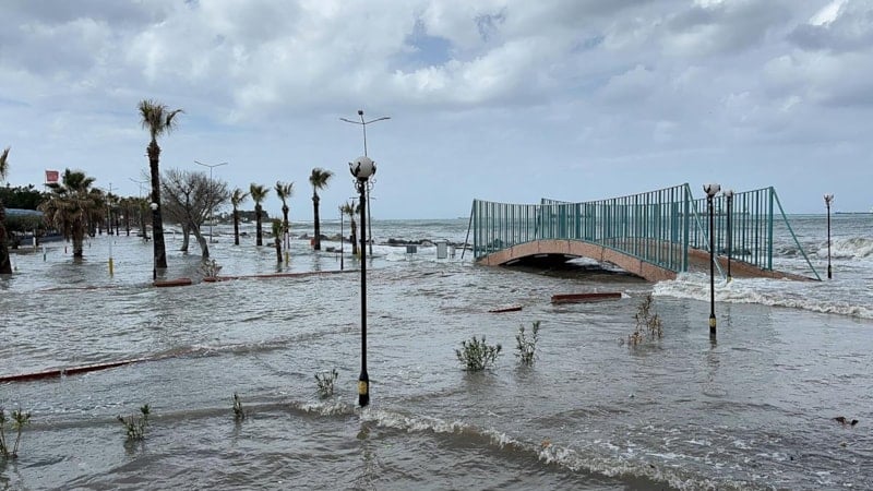 Daha öncede iki kez denizin taştığı sahil şeridi ve Atatürk Bulvarı'nda bugün tekrarı yaşandı.