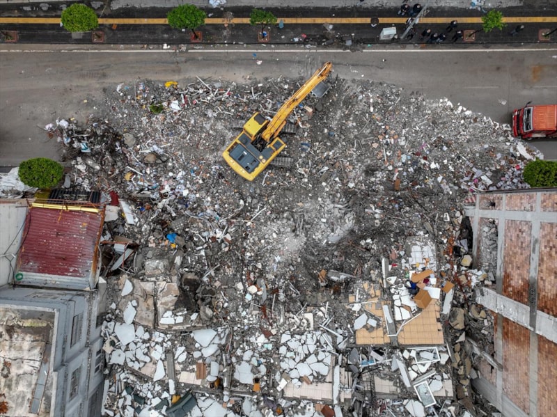 Aynı zamanda hasarlı binaların da yıkımı sürüyor.