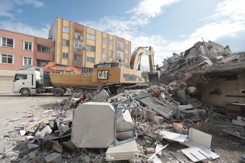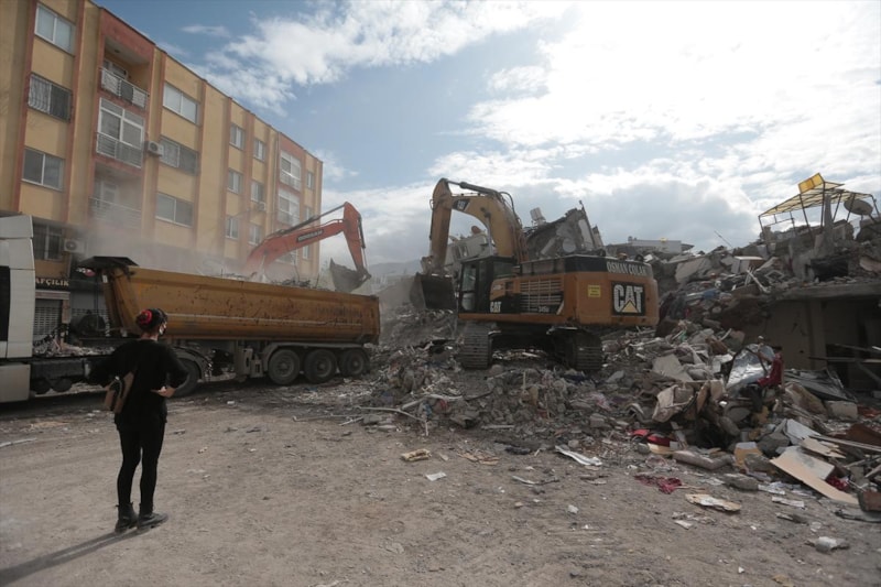 Ekipler bir yandan da depremde yıkılan binaların enkaz kaldırma çalışmalarına devam ediyor.