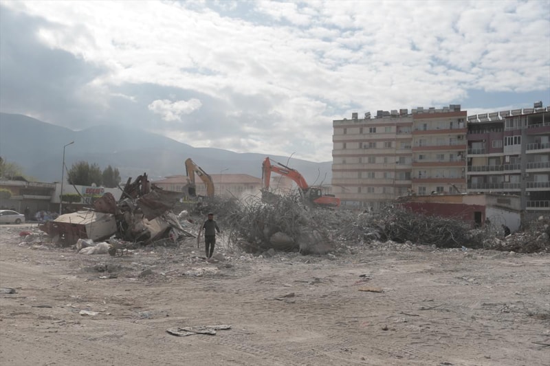 Depremde, ilçede yıkılan binalar da oldu. Ekipler, ağır hasarlı binaların yıkımlarını ve enkaz kaldırma çalışmalarını sürdürüyor.