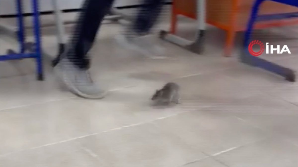 Fare de neye uğradığını şaşırarak sınıf içinde kaçmaya başladı. Eline sopa alan görevliler fareyi etkisiz hale getirmeye çalıştı. Bu durumu gören bazı vatandaşlar ise kahkahaya boğuldu.