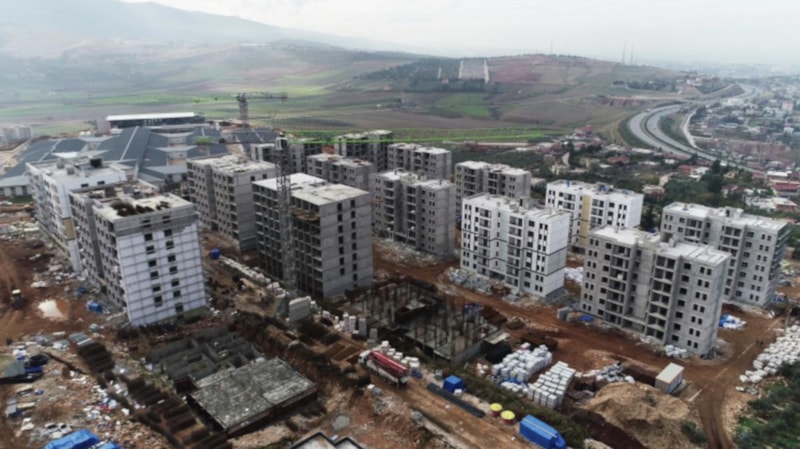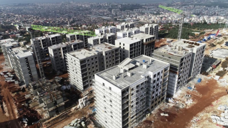 Hatay'da 6 Şubat depremlerin yıkıma neden olduğu İskenderun ilçesinde temeli atılan 3 bin 986 deprem konutunda çalışmalar devam ediyor.
