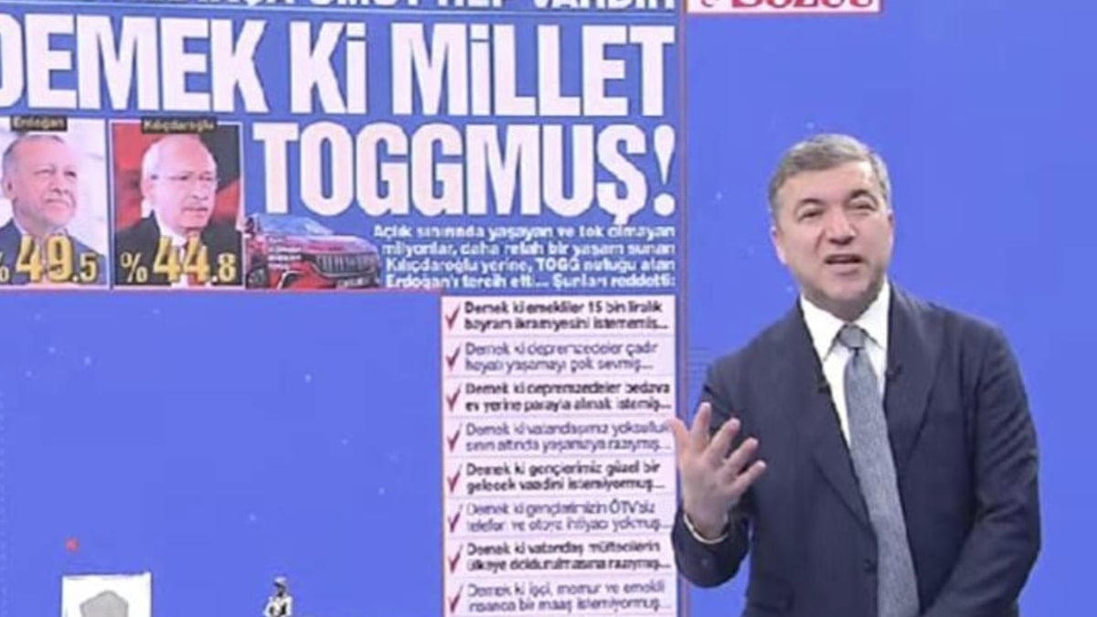 Çarpıcı bir manşet atmışlar. Bir eksiği var bence, ben olsam tamamlardım, Bir de itirazım var efendim. Depremzedelerle ilgili. Şuna katılmadığımı ifade etmek isterim; ‘Demek ki depremzedeler çadır hayatı yaşamayı çok sevmiş’ bunu doğrusu yakışık alır bir mesaj olarak okumadım.