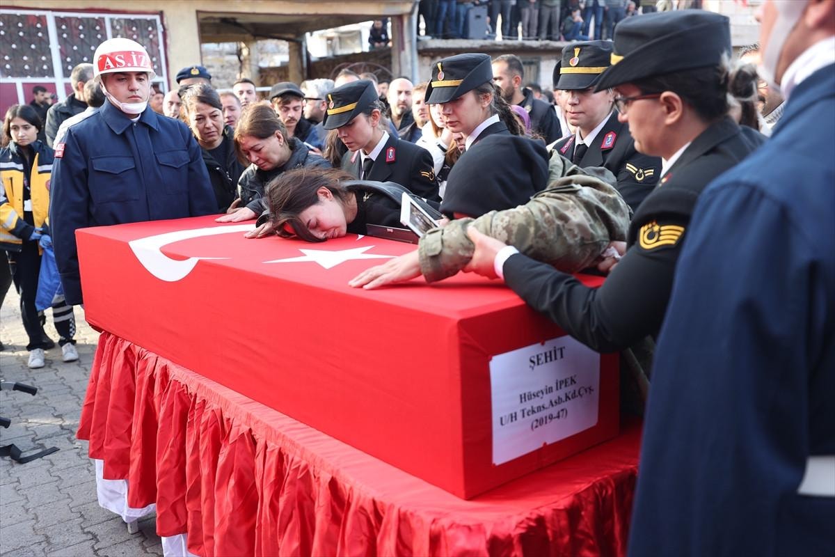 Köy meydanına getirilen Türk bayrağına sarılı tabutun başında, şehidin annesi Sevgi, eşi Elif İpek, kardeşleri ve yakınları gözyaşı döktü.