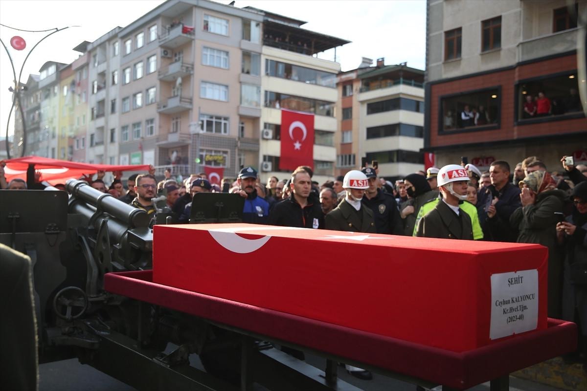 Kalyoncu'nun cenazesi, askeri uçakla getirildiği Rize-Artvin Havalimanı'nın ardından Çayeli ilçesine getirildi.
