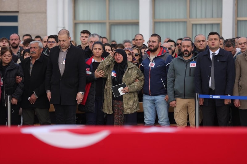 Şehitlerin Türk bayrağına sarılı cenazeleri, eskort eşliğinde Süleyman Demirel Havalimanı'na getirildi.