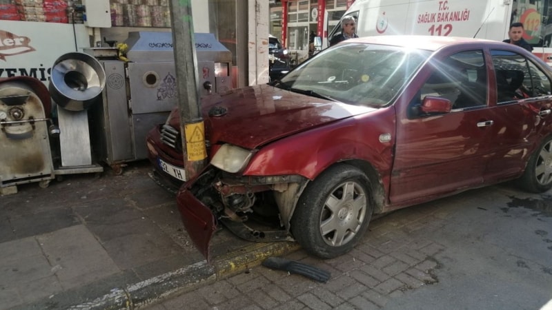Çarpmanın şiddetiyle kontrolden çıkan otomobil, cadde kenarındaki aydınlatma direğine çarparak durabildi.