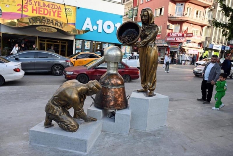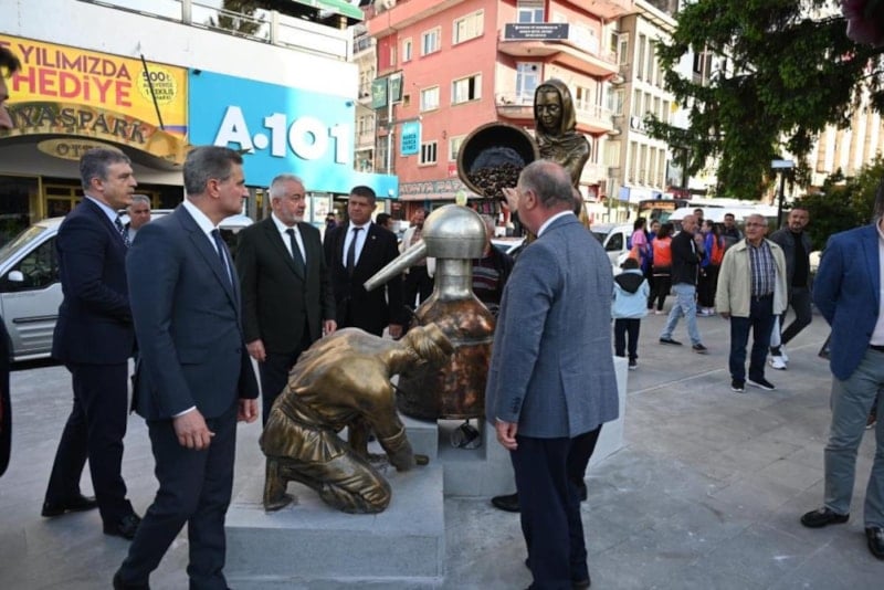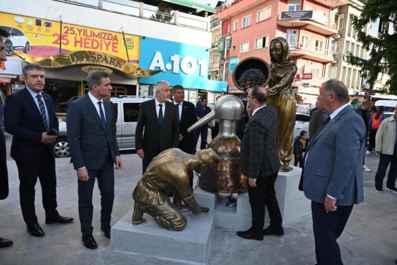 Vatandaşlara hizmet için kollar sıvanırken Isparta'da yapılan bir heykel dikkat çekti.
