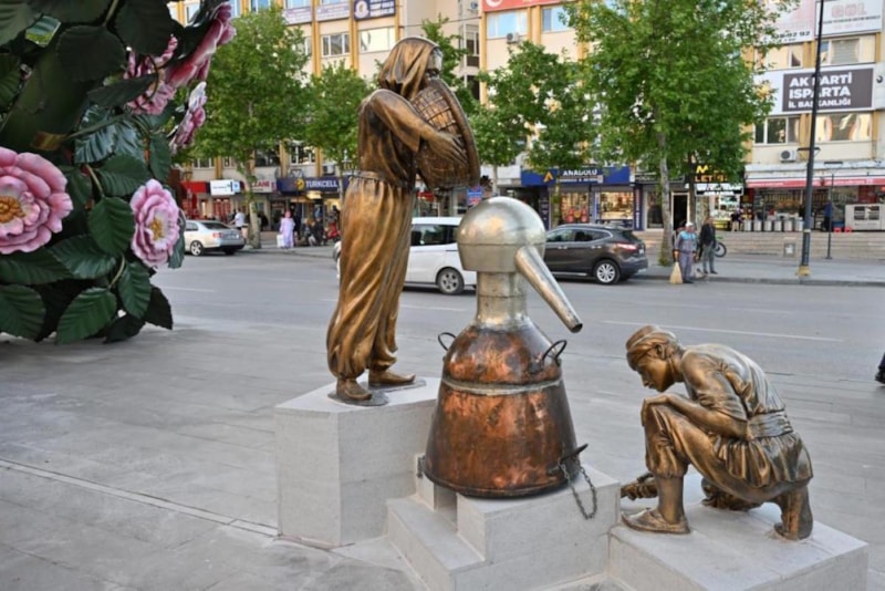Isparta Belediyesi tarafından Kaymakkapı Meydanı'nda gül çiçeğinin gül yağına dönüşümünü temsil eden Gülhane heykeli yapıldı.
