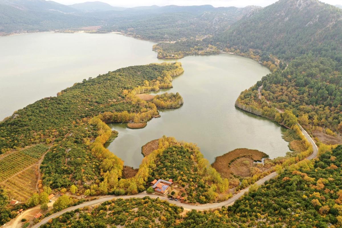 Suyun çekilmesiyle birlikte kısa süre önce göl, Hoyran Boğazı'ndan ikiye ayrıldı.