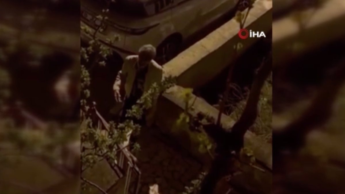 O anlar ise, balkondaki kişi cep telefonu kamerası ile kaydetti.