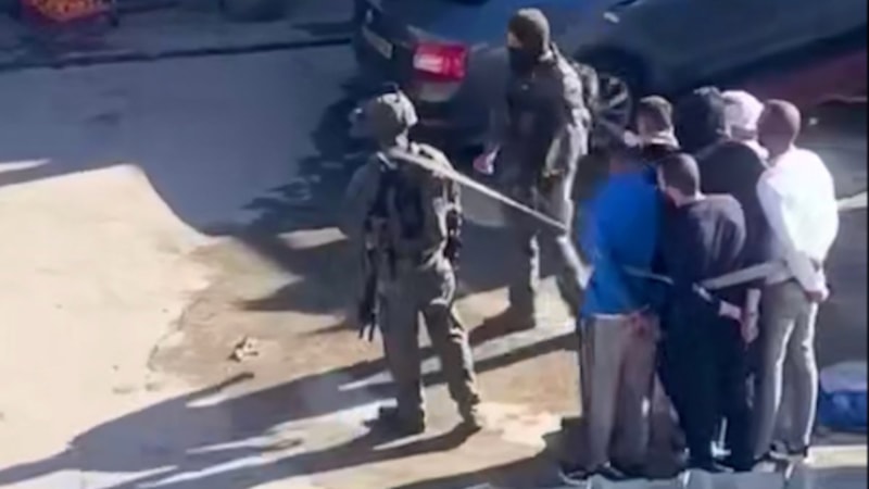 İsrail askerlerinin Doğu Kudüs'te 6 Filistinliyi kemerle birbirine bağlayarak gözaltına aldığı anlar kameraya yansıdı.