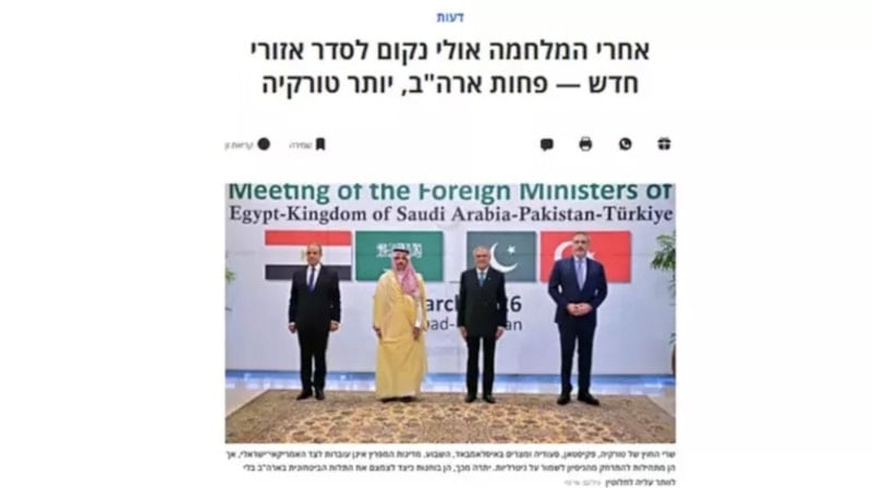 Türkiye'nin son dönemde Suudi Arabistan, Mısır ve Birleşik Arap Emirlikleri (BAE) ile ilişkilerini stratejik bir boyuta evirdiği vurgulanan yazıda, 19 Mart'ta Türkiye, Suudi Arabistan, Mısır ve Pakistan dışişleri bakanları arasındaki dörtlü zirvenin bu yeni arayışın en somut örneği olduğu ifade edildi.