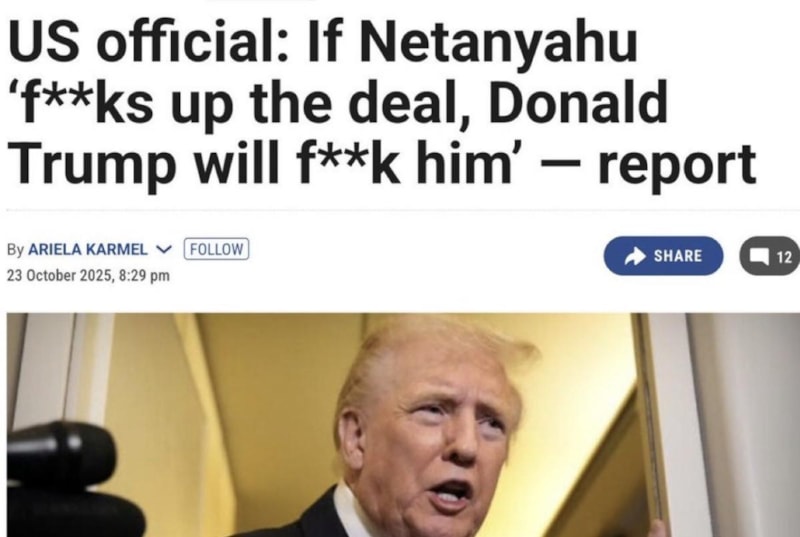 Trump-Netanyahu gerilimine dikkat çeken yetkili “Netanyahu, Trump’la çok ince bir ip üzerinde yürüyor. Eğer böyle devam ederse, sonunda anlaşmayı si…cek. Ve eğer anlaşmayı si..se, Donald Trump da onu si…cek.” ifadelerini kullandı.
