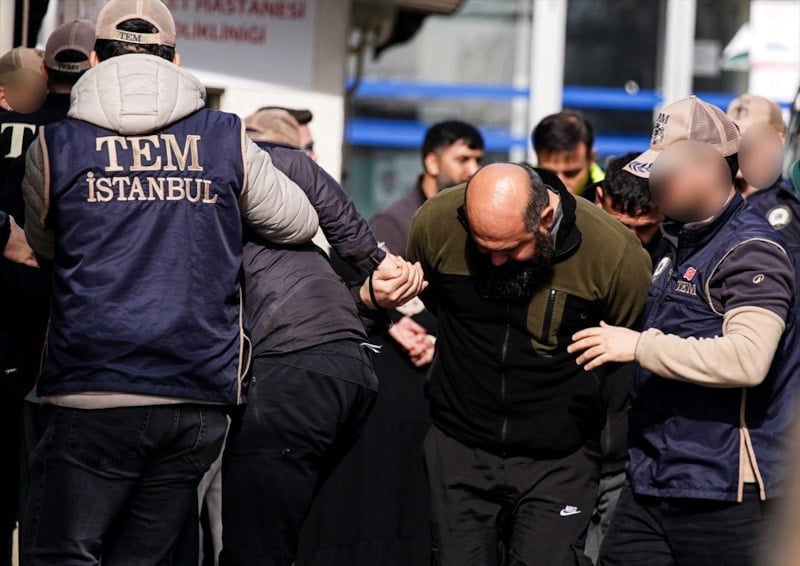 Beşiktaş'ta İsrail Konsolosluğu'nun da bulunduğu binanın önünde çıkan çatışmada 1 şüpheli öldürüldüğü, 2 şüphelinin yaralı olarak etkisiz hale getirildiği olaya ilişkin başlatılan soruşturma kapsamında gözaltına alınan şüpheliler adliyeye getirildi.