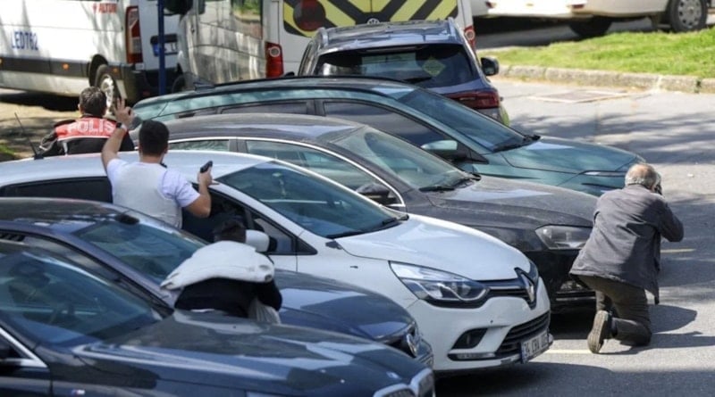 İstanbul'un Beşiktaş ilçesinde bulunan İsrail Konsolosluğu'nun da bulunduğu plazanın önünde 7 Nisan'da, polis noktasına silahlı saldırıda bulunuldu.