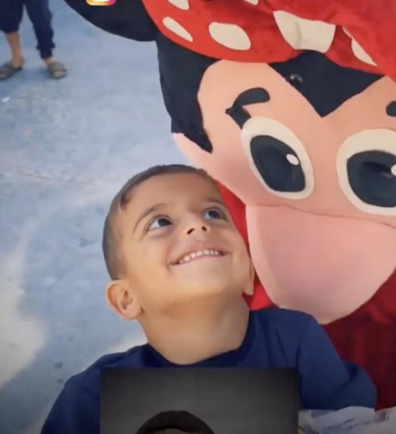 Muhammed'in, savaş travmasına giren çocukları biraz olsun eğlendirmek için kampta düzenlenen programda yüzünün güldüğü görüldü.