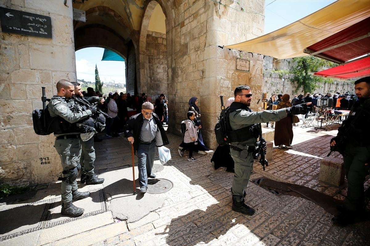 Cuma namazını kılmak için Mescid-i Aksa'ya gitmek isteyen Filistinlilere kimlik kontrolü yapan İsrail polisi, çok sayıda Filistinliyi özellikle de belirli yaş grubunun altındakileri geri çevirdi.