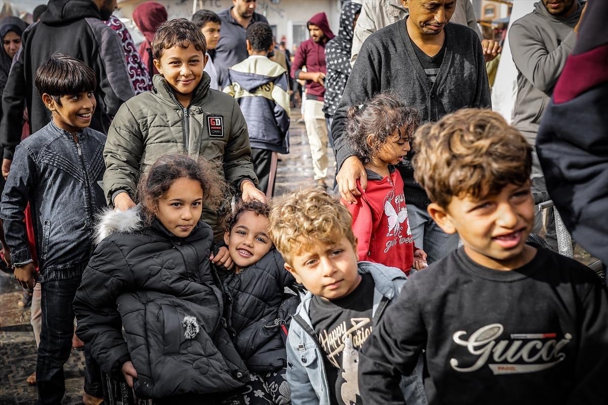 İsrail'in saldırılarından kaçmayı başaran yüzlerce Gazzeli aile, Birleşmiş Milletler (BM) Filistinli Mültecilere Yardım Ajansı'nın Han Yunus kentinde kurduğu çadır kampında konaklıyor.