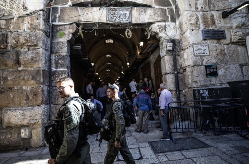 Bugün de cuma namazı kılmak isteyen Filistinlilere yine kısıtlamalar getirildi. Mescid-i Aksa çevresinde kısıtlamalarını sürdüren İsrail polisi, Eski Şehir sokaklarında yoğun güvenlik önlemleri aldı.
