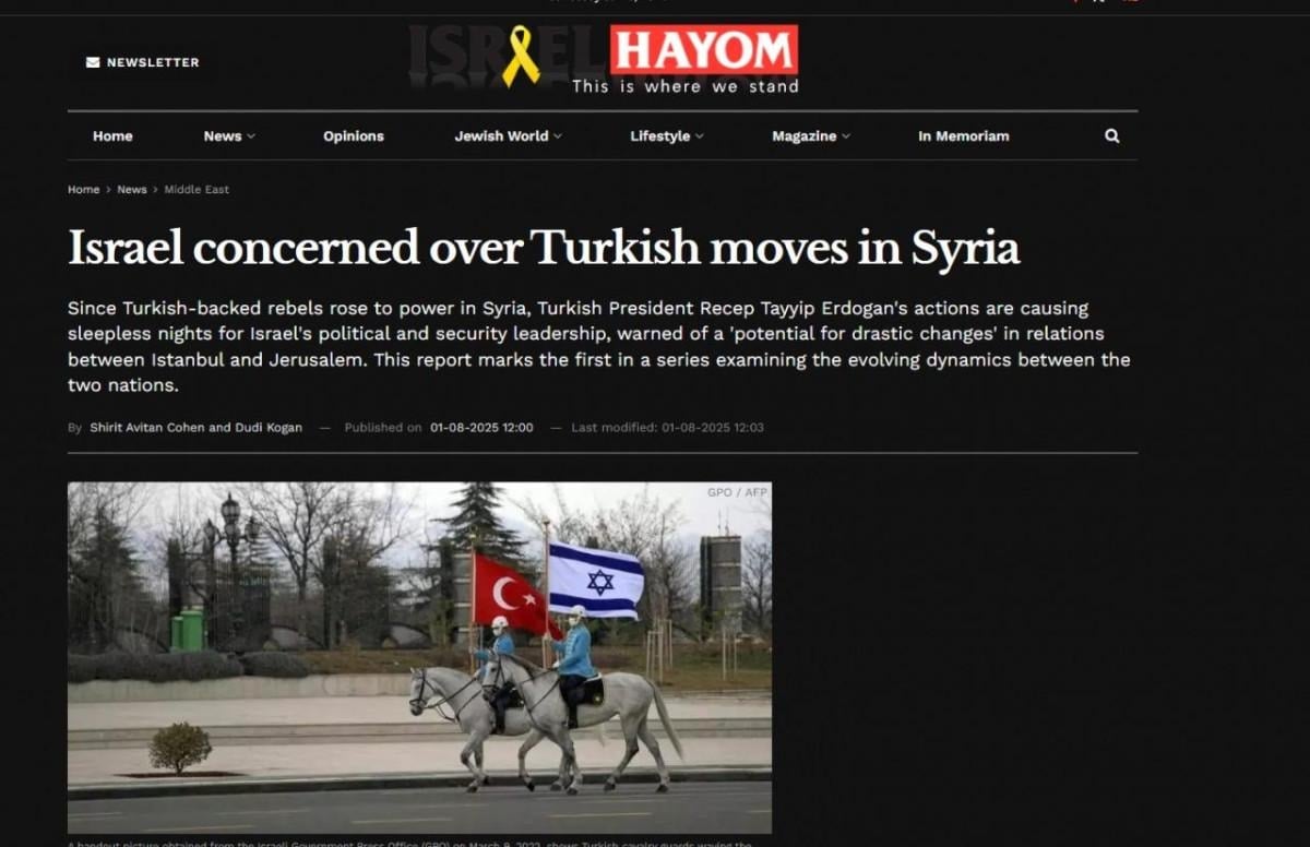 Suriye'de, SMO ve HTŞ liderliğindeki silahlı muhaliflerin 61 yıllık Baas rejiminin devirmesinin ardından "Türkiye'nin Rusya ve İran'ın yerini alarak Suriye'yi uydu devlet haline getirmeye çalıştığı" iddia edilirken bunun, İsrailli yetkililer için "giderek artan bir endişe kaynağına dönüştüğü" ileri sürüldü.