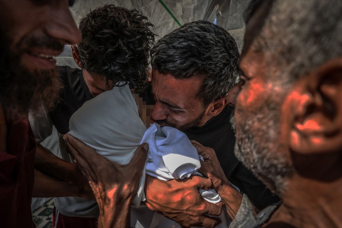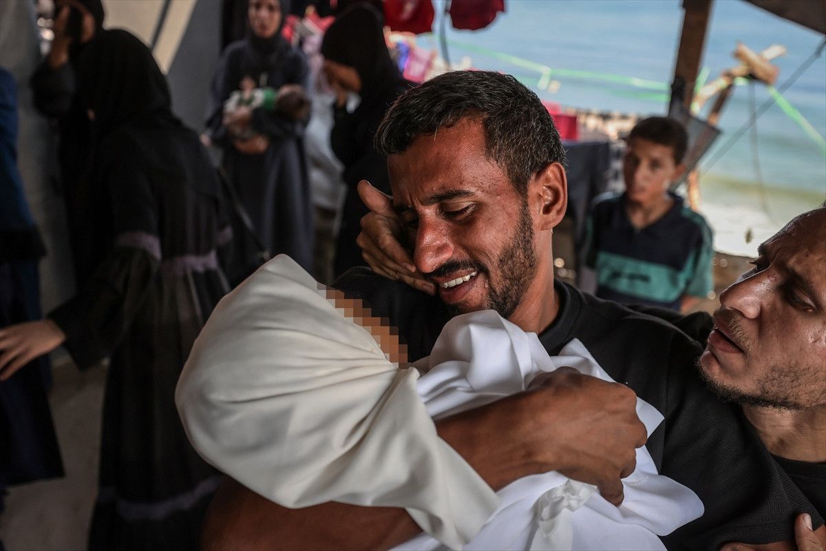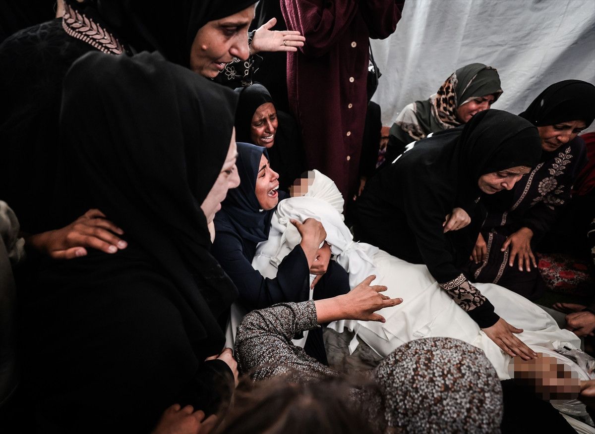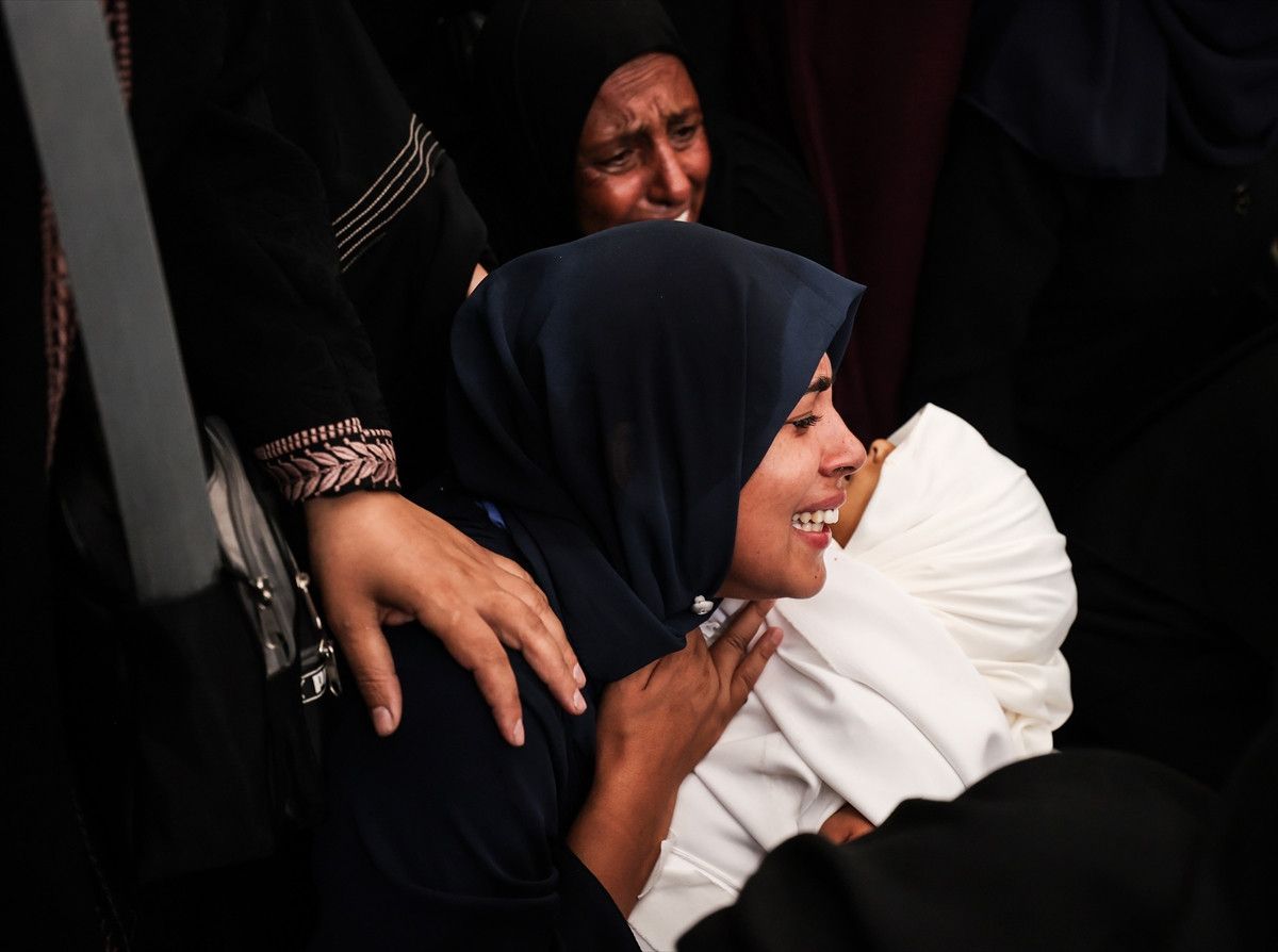 Saldırı sonrası yaşamını yitirenlerin naaşları, cenaze işlemleri için Şifa Hastanesi'ne getirildi. Yakınını kaybeden Filistinliler üzüntü yaşadı.