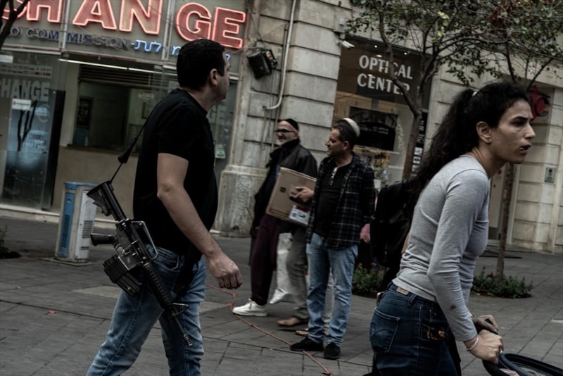 İsrail ile Filistin arasında başlayan çatışmaların ardından İsrail hükümetinin silahlanma kurallarını gevşetmesiyle İsrailli siviller silahlanmaya başladı.