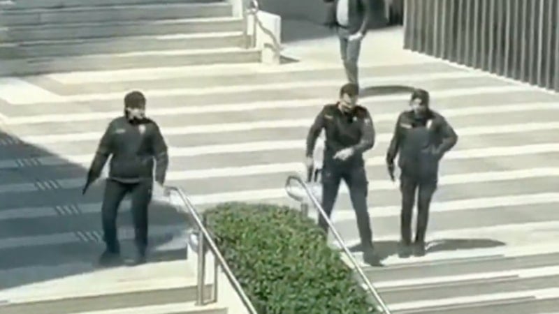 Diğer görüntülere bakıldığında ise polis ekipleri terör saldırısı sırasında çevre güvenliğini kontrol altına almak için çabalarken, plazada bulunan çalışanlar dalga geçti.
