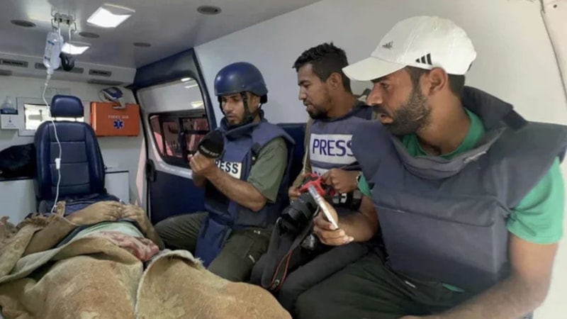 İsrail ordusunun Gazze Şeridi'ndeki Nusayrat Mülteci Kampı'nı bombalaması sonucu aralarında TRT Arapça ekibinin de bulunduğu bir grup gazeteci yaralandı.