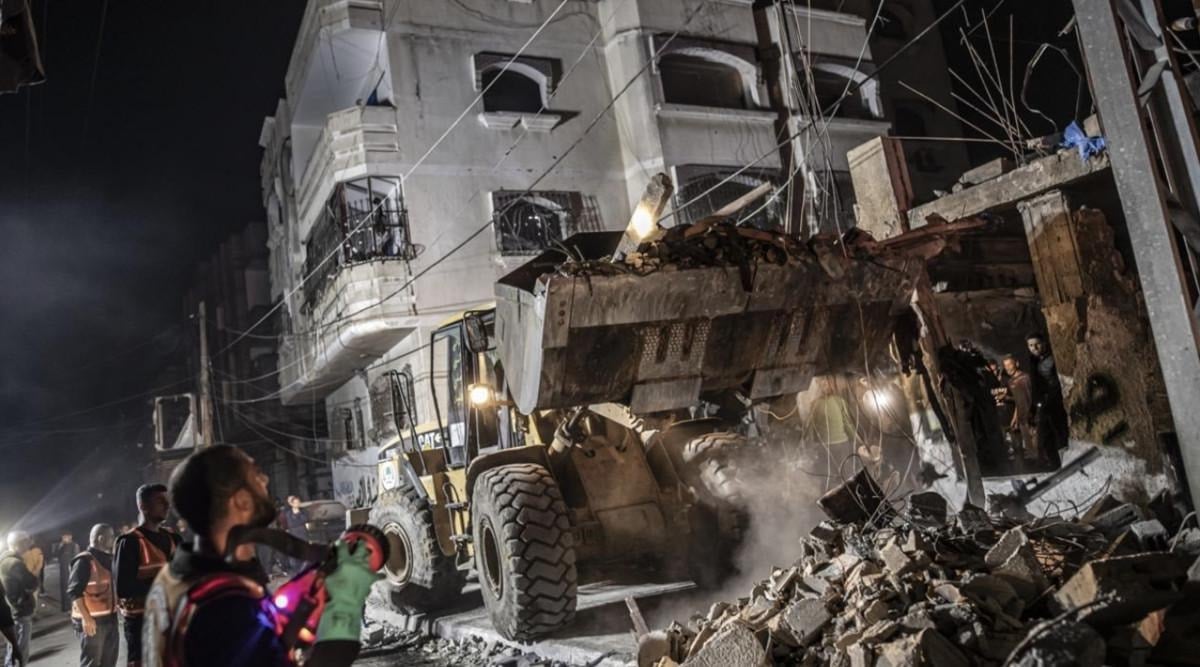 İsrail ordusunun, Gazze Şeridi'nin güneyinde yer alan Refah kentine düzenlediği saldırı sonucu yerinden edilmiş "Ebu el-Hunud" Ailesi'nin evi yıkılırken çevredeki yapılarda da ağır hasar oluştu.
