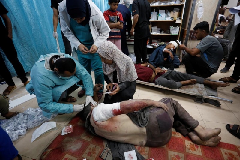 Saldırı sonucu ölen Filistinlilerin cenazesinin Aksa Şehitleri Hastanesi'ne ulaştığı, onlarca yaralının getirildiği kaydedilen açıklamada, kapasitesinin üç katı yaralı ve hastalarla dolduğu vurgulandı. Hastaneye ölü ve yaralıların getirilmeye devam edildiğine dikkat çekildi.,
