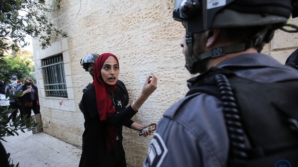 İsrail güçlerinin kanlı saldırılarına karşı protesto düzenleyen Filistinli kadınlar, Doğu Kudüs'teki Şeyh Cerrah Mahallesi'nde İsrail polisleri tarafından darbedildi. Gösterici kadınlardan birinin başörtüsünü çıkardılar.