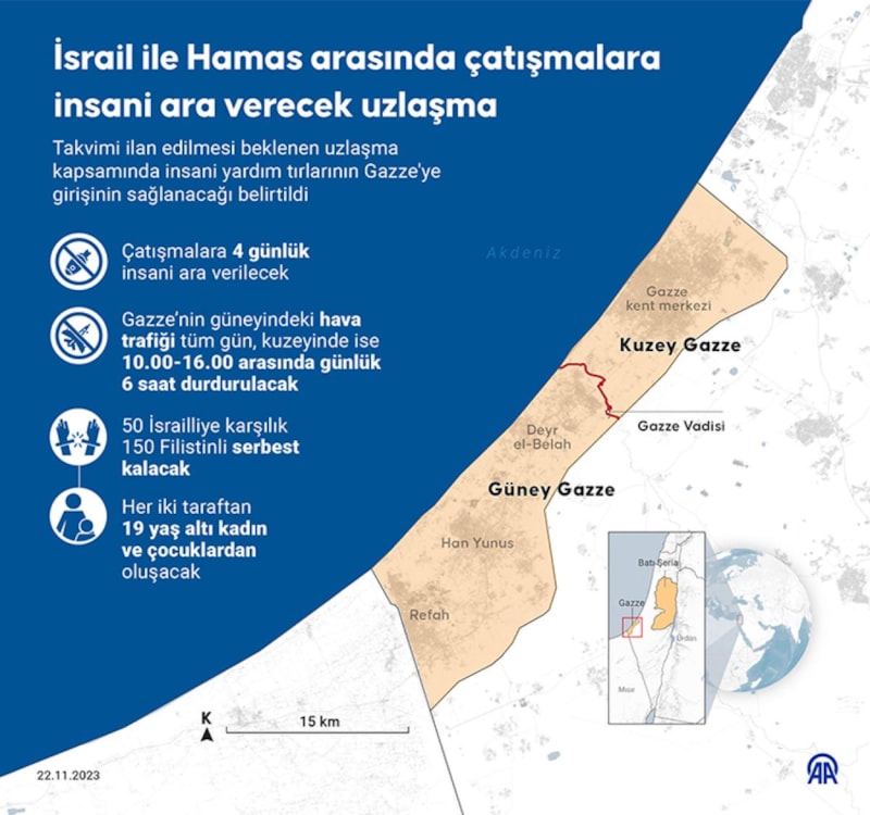 Hamas'ın 4 gün boyunca her gün 12 veya 13 esiri serbest bırakacağı ifade edildi. İsrail de serbest bırakabileceği 300 kişilik bir liste oluşturdu.
