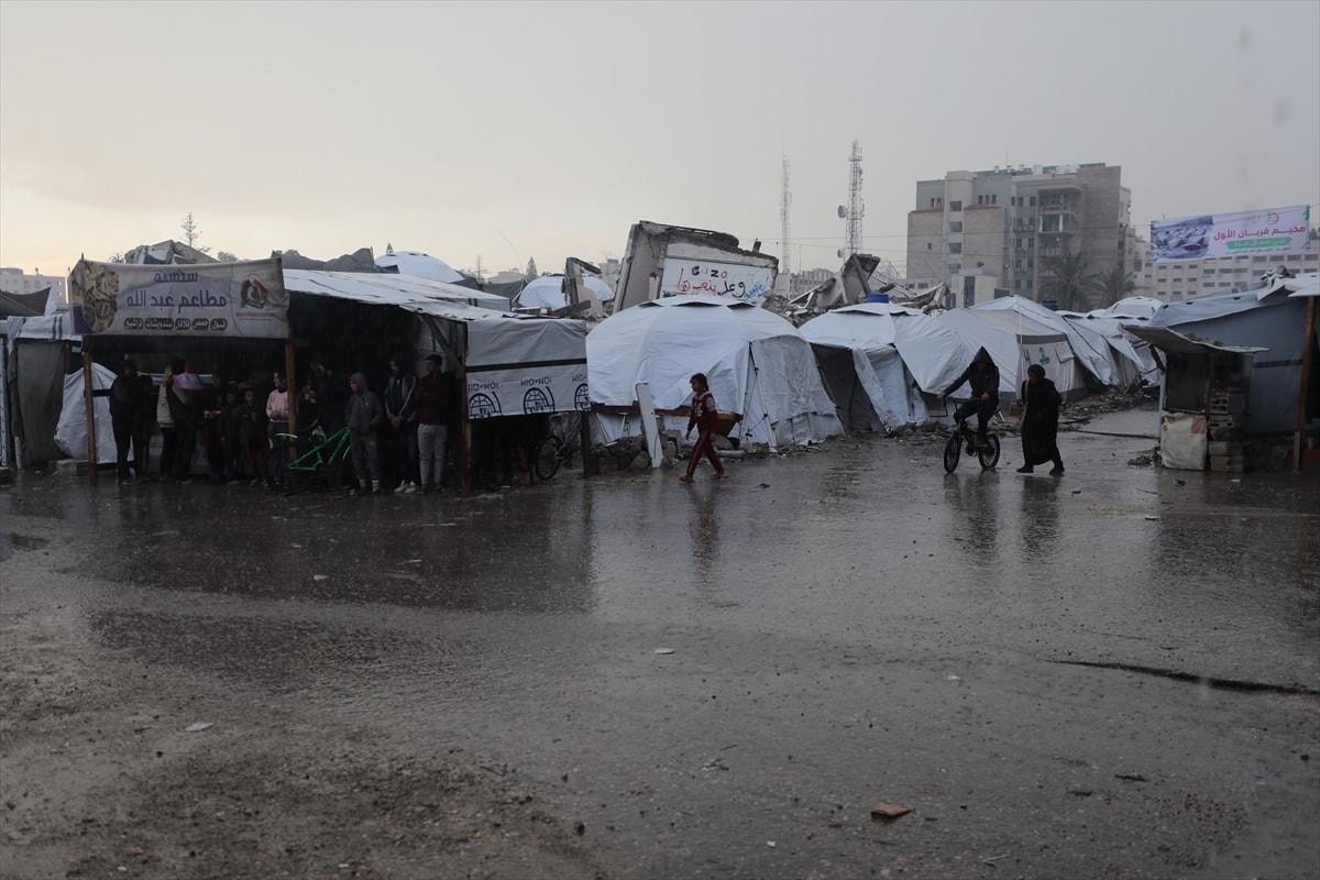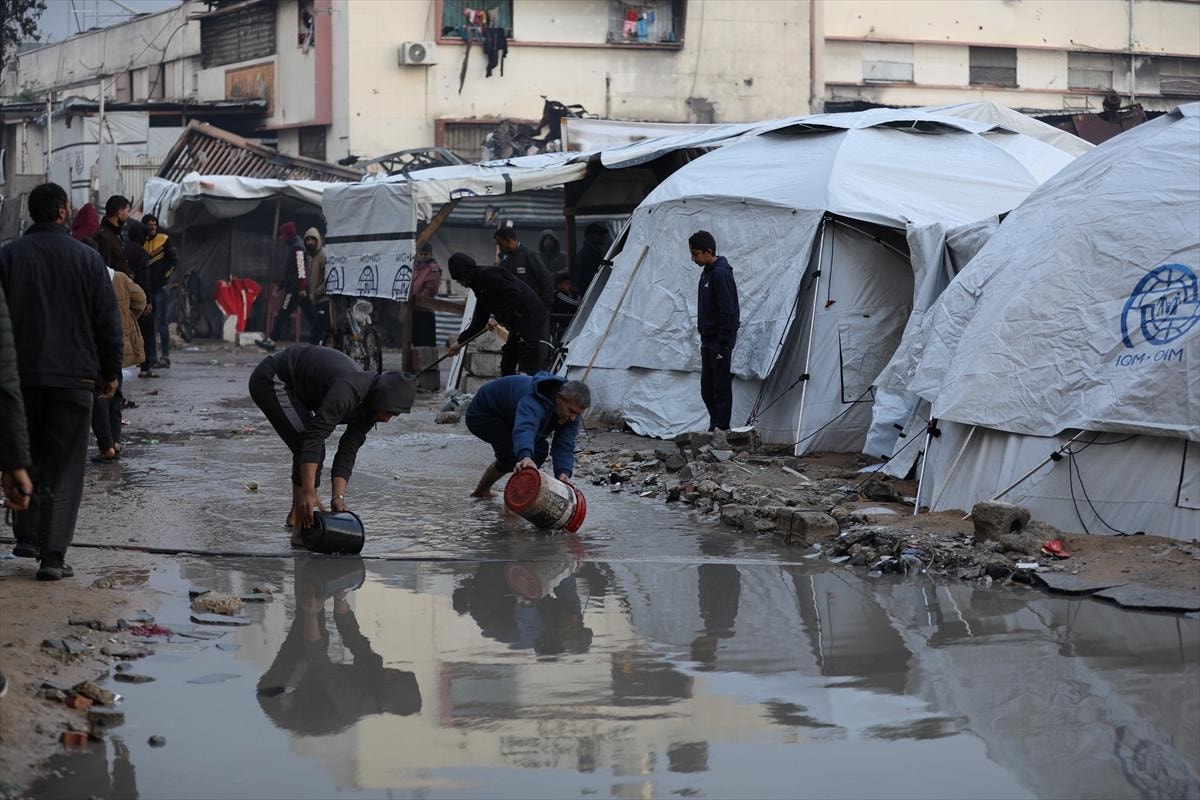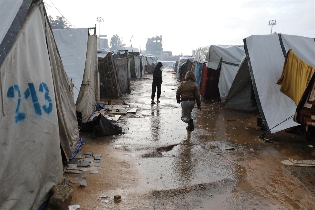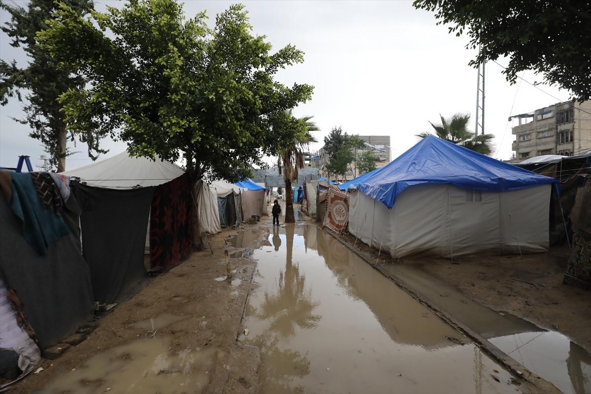 Gazze'nin orta kesimindeki Nusayrat Mülteci Kampı'nda kurulan çadırlara sığınan Filistinliler gece yarısı şiddetlenen yağmur sonucu su baskınları ile uyandı. Çadırlarının içine su baskınları yaşanırken yollar çamurla kaplandı.
