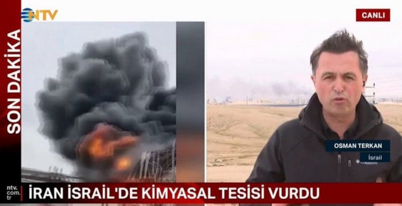 İsrail’de Ramat Hovav Sanayi Tesisi yakınlarında İran tarafından gerçekleştirilen saldırı, bölgedeki NTV ekibi tarafından canlı olarak görüntülendi.