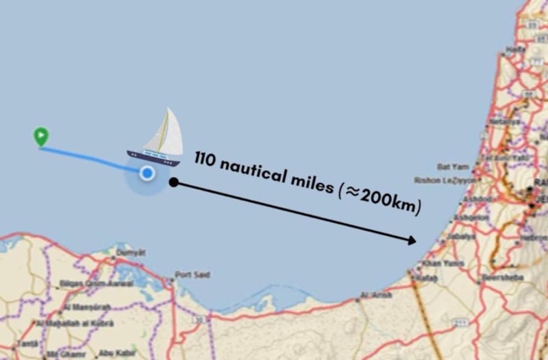 Paylaşımda, uluslararası bir sivil iletişim sistemi kullanılarak Madleen yelkenlisiyle iletişim kurulduğu ve "rotasını değiştirme talimatı" verildiği kaydedildi.