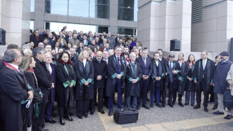 İzleyicilerin fazla olması dolayısıyla İstanbul 27. Ağır Ceza Mahkemesi salonunda görülen davada mahkeme heyeti avukatları salondan çıkarmak istedi.