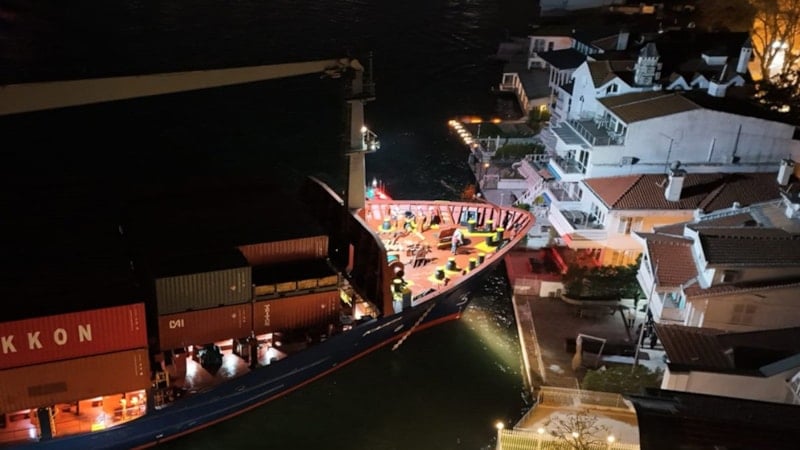 İstanbul Boğazı'nda dümen arızası yaşayan 148 metrelik konteyner gemisi Sarıyer'de yalıya çarpmasına metreler kala karaya oturdu. İstanbul Boğazı'ndaki deniz trafiği çift yönlü olarak askıya alındı.