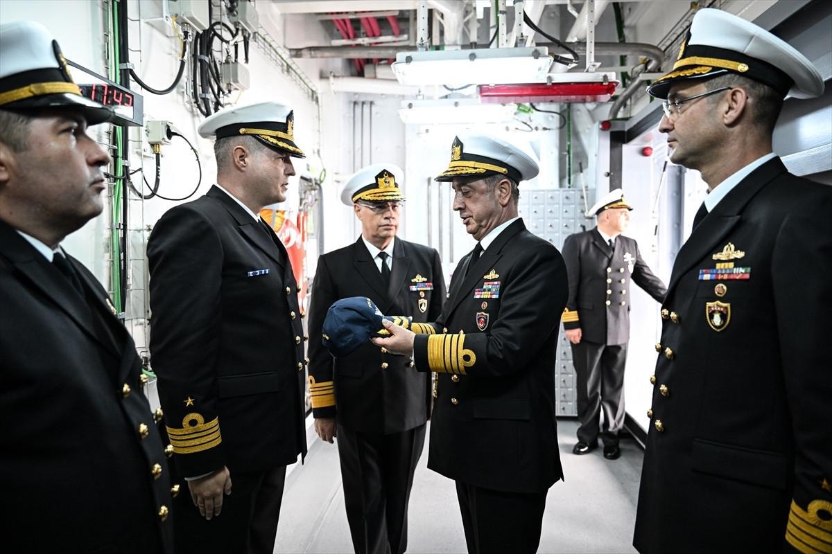 Gemiye çıkışında denizcilik usullerine uygun olarak "silistre" adı verilen denizcilik düdüğü çalınarak karşılanan Oramiral Tatlıoğlu'na, üzerinde geminin adı yazan "gemi şapkası" takdim edildi.